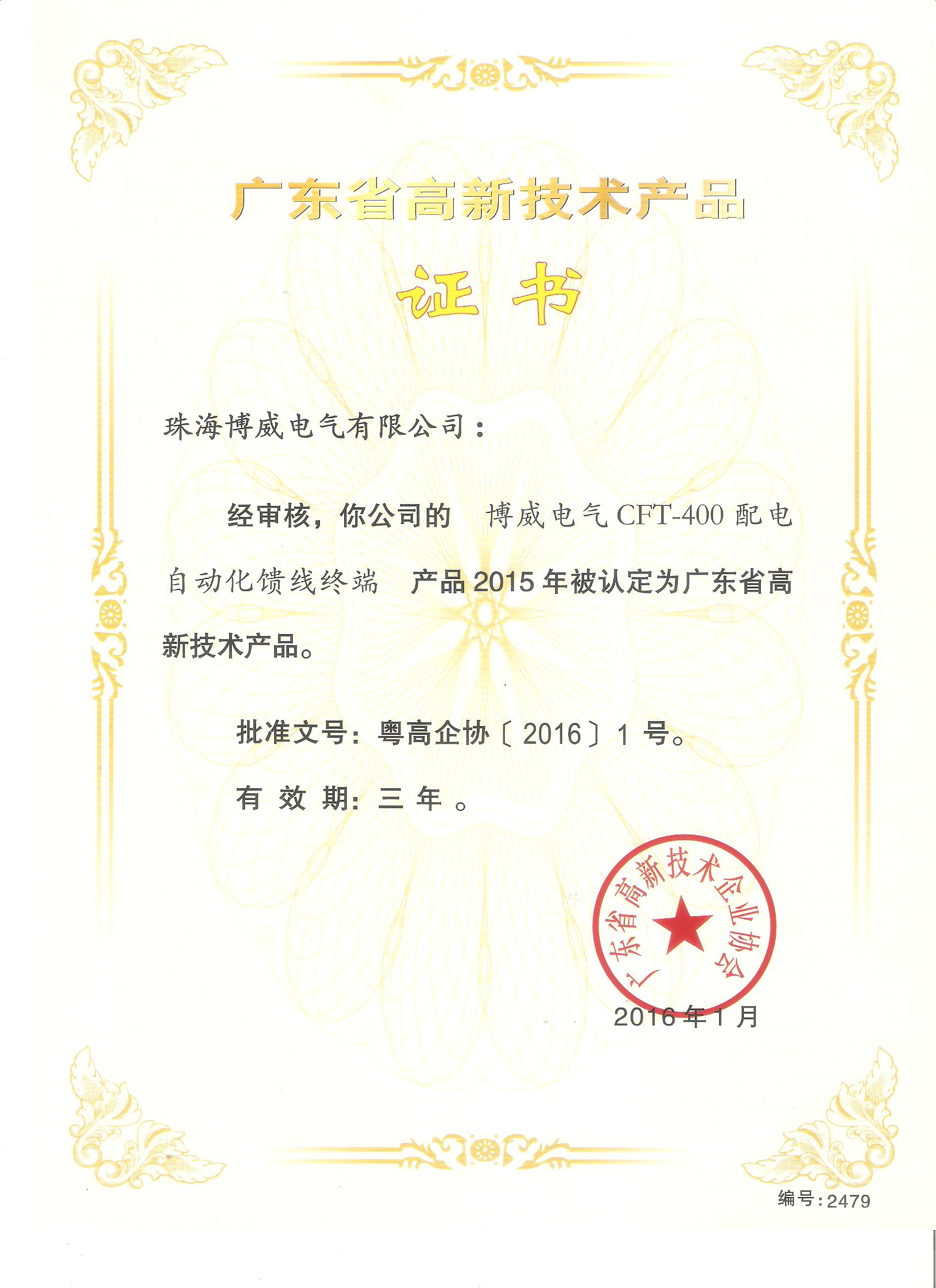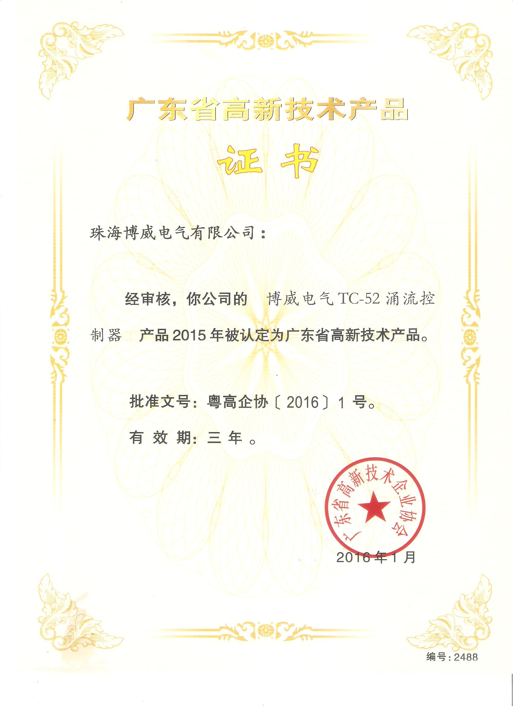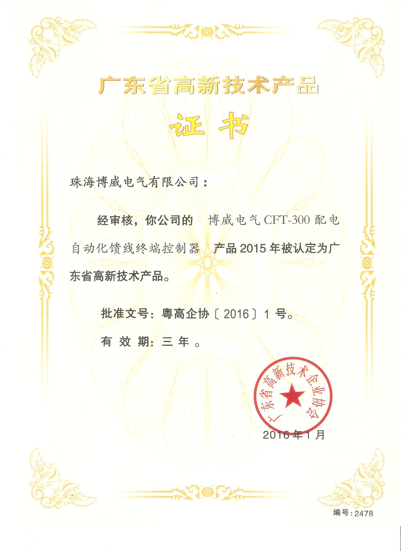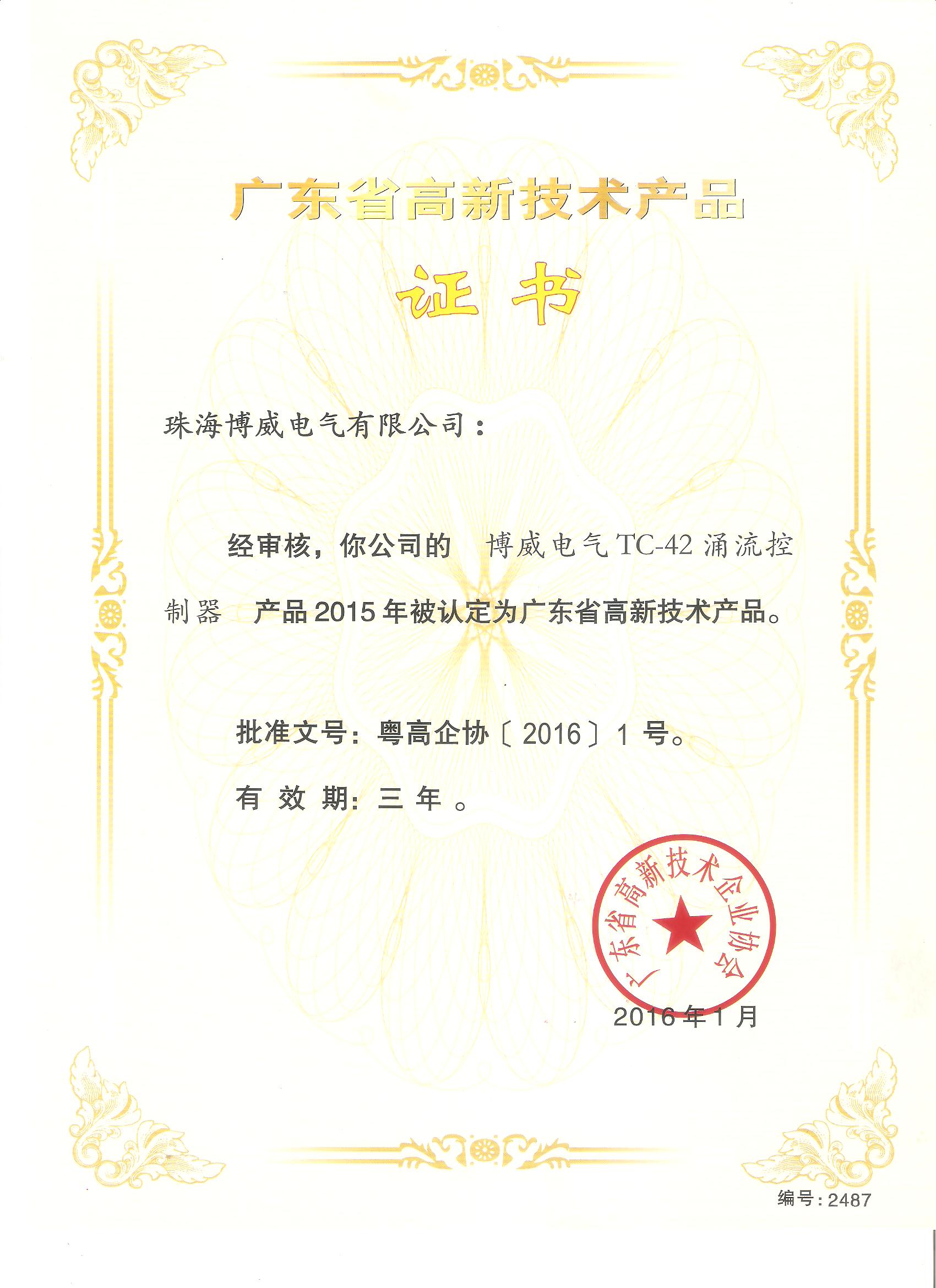 高新技術(shù)產(chǎn)品證書